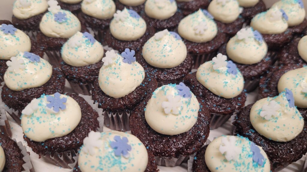 Choix possible de 2 saveurs par douzaine pour les cupcakes classiques et 1 saveur par douzaine pour les minis cupcakes.