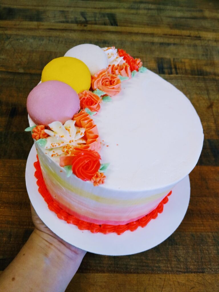 Un layer cake comprend 1 étage de plusieurs couches de gâteau moelleux et de crème, ce qui lui donne cette hauteur caractéristique. Les saveurs, ainsi que le décor, sont entièrement personnalisables.
